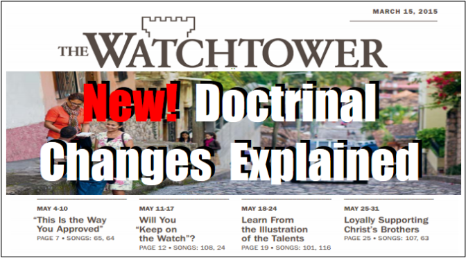 There are a some specific doctrinal changes spelled out in the March 15, 2015 Watchtower (the “Study Edition” available on the JW.ORG website). But the biggest, most important change is about a method for explaining Scripture that will affect many more doctrines than the specific examples mentioned in the magazine.